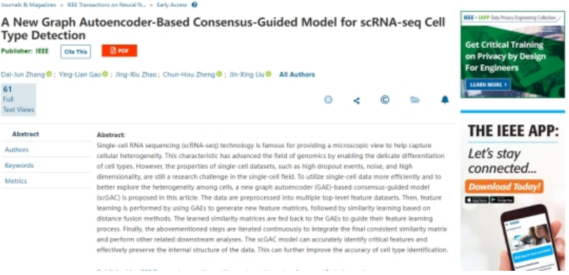 刘金星教授在人工智能领域国际顶级期刊《IEEE Transactions on Cybernetics》(IEEE TCYB)和《IEEE Transactions on Neural Networks and Learning Systems》(IEEE TNNLS)上接连发表题为“NCPLP: A Novel Approach for Predicting Microbe-Associated Diseases With Network Consistency Projection and Label Propagation”,“Predicting miRNA-disease associations through Deep Autoencoder with Multiple Kernel Learning”和“A New Graph Autoencoder-Based Consensus-Guided Model for scRNA-seq Cell Type Detection”论文。万博娱乐城