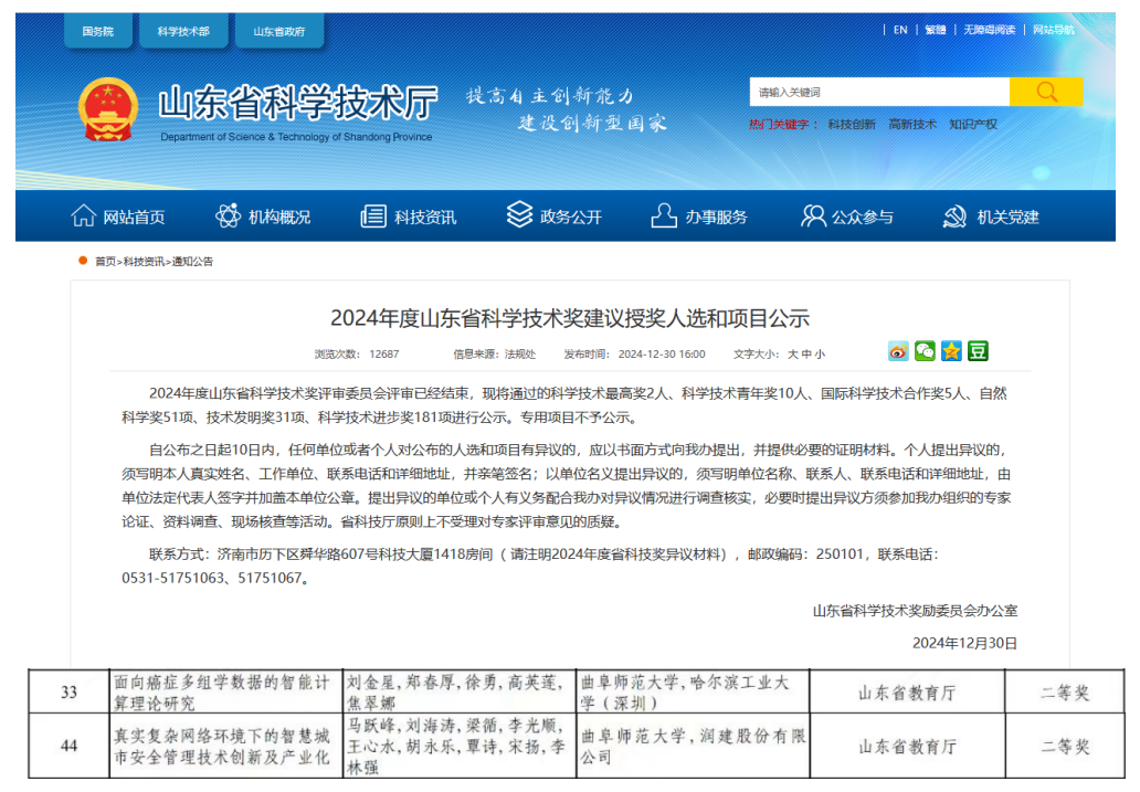 2023年荣获山东省科学技术奖2项后,这是万博娱乐城