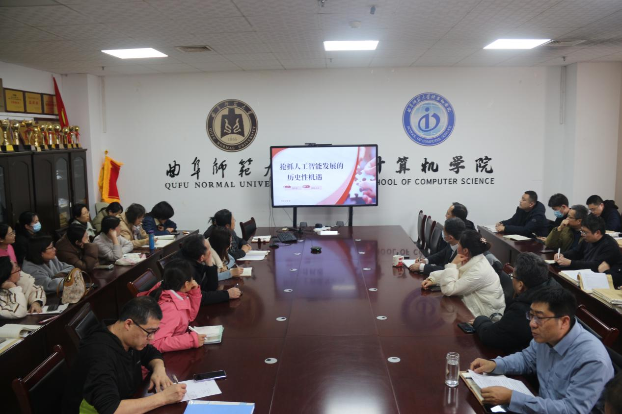 学习会上,副院长尚军亮带领全体教师学习高文院士在人民日报上发表的文章《抢抓人工智能发展的历史性机遇》一文。尚军亮向老师们分享了高文院士在文中对人工智能战略意义与价值的思考,结合他担任东港区科技副区长工作时的所见所闻,介绍了当前中国人工智能产业的发展趋势,分析发展优势和面临的挑战,列举了与网络通信技术融合、算力基础设施建设、大模型发展、开源共享等关键发展路径,传达了国家推进人工智能高质量发展的具体要求。学习会的最后,尚军亮强调人工智能是新一轮科技革命和产业变革的重要驱动力量,面临关键历史机遇,必须以紧迫感、责任感、使命感,勇立潮头,推动人工智能创新发展。他鼓励全体教师聚焦人工智能重大战略需求,深化人工智能领域的学术研究,为高质量发展注入强劲动能。