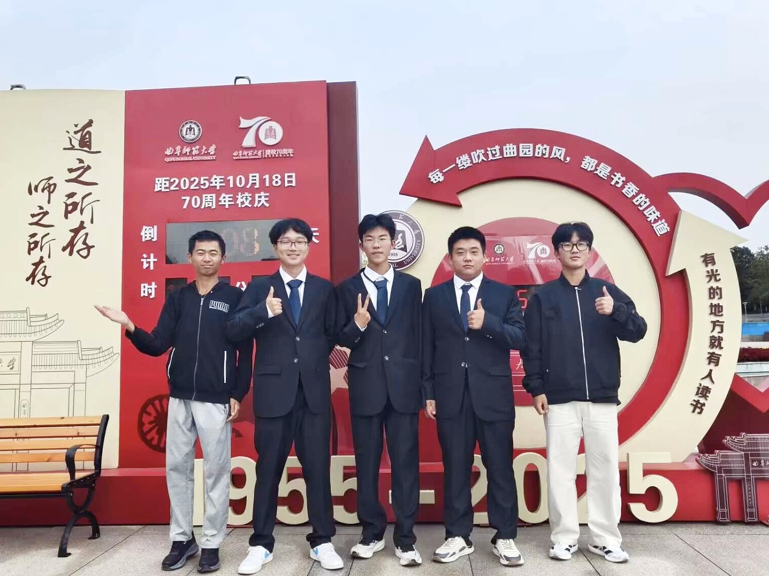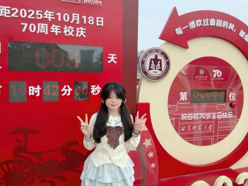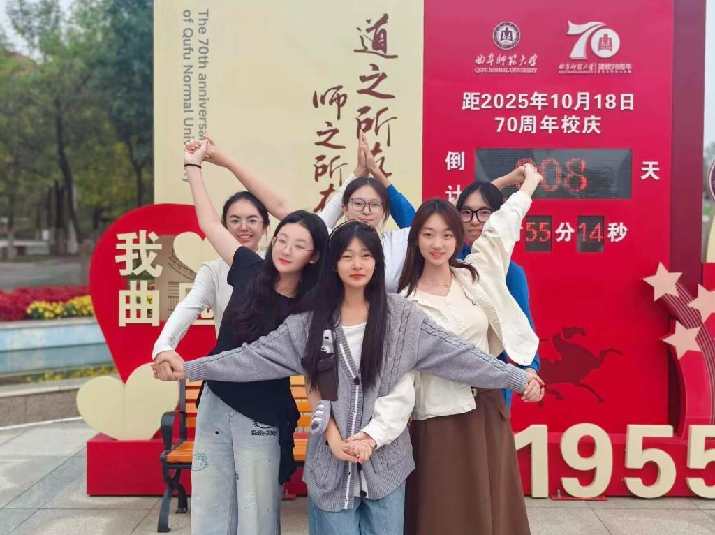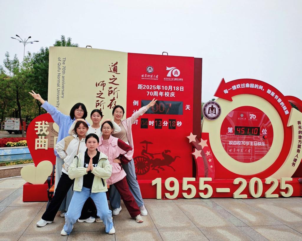 此外,学生们还以宿舍、班级为单位,自发组织在倒计时立牌前合影。室友间的默契笑颜、班级间的亲切互动,构成了属于曲园人的温暖画面。“我与七秩同框”,不仅是一张照片,更是一段共同情感的珍藏,一份属于此刻的集体记忆。