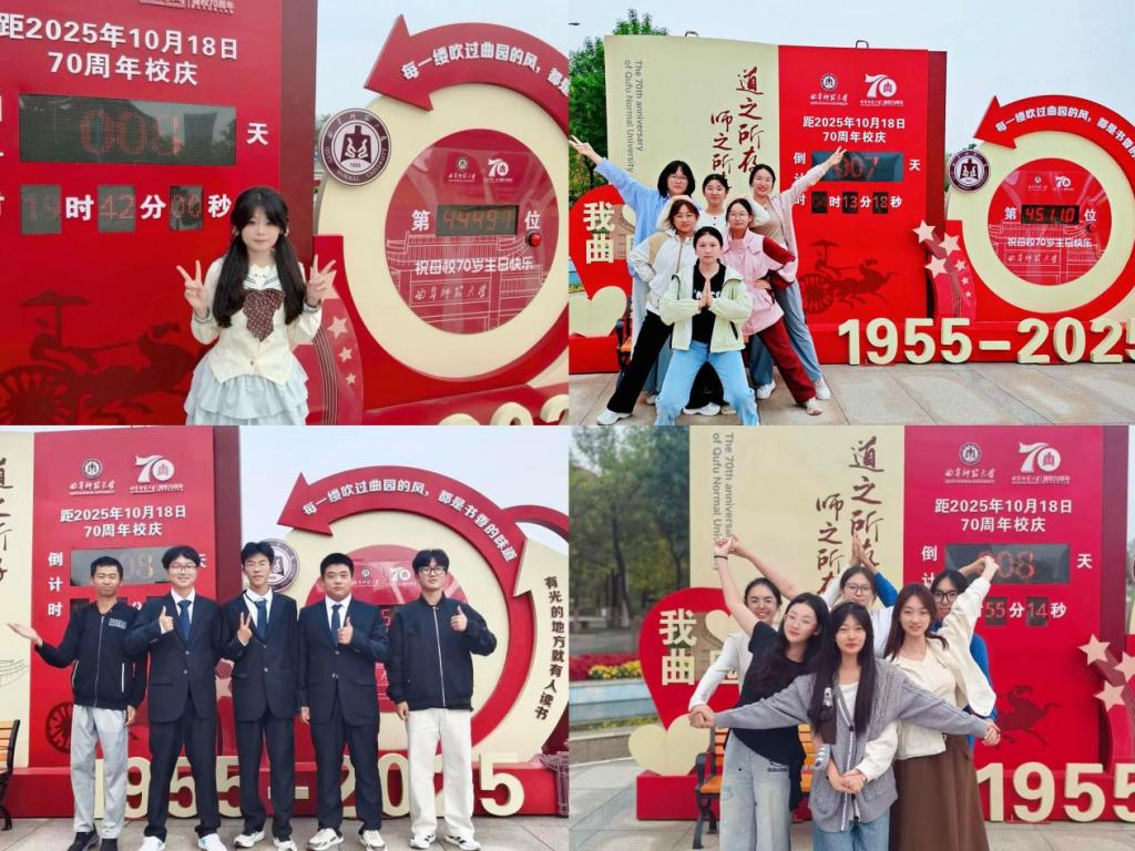 组织开展校庆倒计时合影活动。学子们积极响应号召,以镜头为笔、以笑容为墨,在印有时光倒计时与 “曲园” 元素的立牌前有序集结。大家或独自打卡、或结伴而来,宿舍室友的默契笑颜、班级集体的亲切互动,共同构成温暖画面。