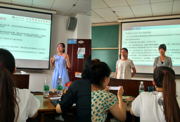报告会内容丰富,图文并茂,形式新颖,小组成员充分参与,理论与案例相得益彰,夏小娜老师对每个报告做了总结点评。通过七位评审人的现场评阅和打分,由牛昭峰、郑建超、王雅萱、管晶晶和王少青组成的“打车软件”团队以紧凑全面的内容定位、有机融合的中英文阐述、简约大气的汇报模式,获得了9.63分的高分力拔头筹。其他五个团队也各有特色,不比相上。圆满完成了本次报告会的任务,得到夏小娜老师和全体研究生的大力肯定和好评。
