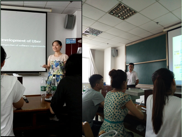 2015级硕士研究生于JC612举办了《高级软件工程》结课学术报告活动。六个小组分别就“Alipay VS We Chat”、“电子商务与互联网金融”、“区块链”、“大数据”、“打车软件”和“互联网+支撑下的快递产业”六个专题从软件工程角度进行了透彻的现状分析和论证。2014级和2016级部分研究生参与并评审了本次报告会。