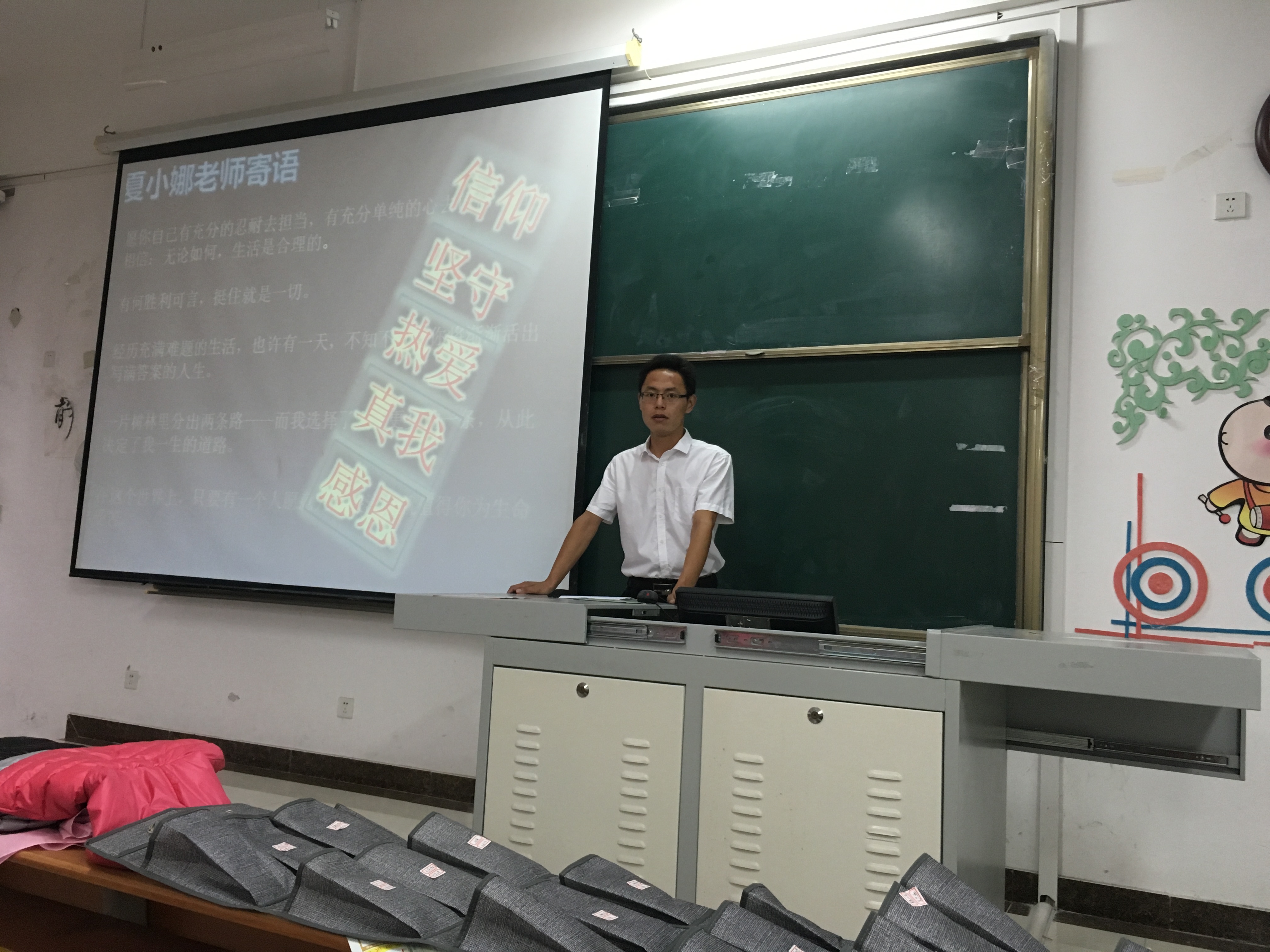 以及研究生生活的了解,感受到了师哥师姐带给他们的榜样力量,让他们在研究生阶段也能够勤奋刻苦,努力钻研,在科研上有所成就。会议进行的第三项是研究生会各部门的工作介绍,包括秘书处、学习部、纪检部、文宣部以及体育部,让师弟师妹们了解研究生会的工作,积极配合并参与其中。会议第四项是研究生会主席韩英帅同学的总结,再一次向新同学表示了热烈的欢迎,同时也向他们嘱咐了一些注意事项以及必须遵守的要求。会议的最后由夏老师向2016级新生做了精彩的欢迎致词,并赠与他们十字箴言:信仰,坚守,热爱,真我,感恩。