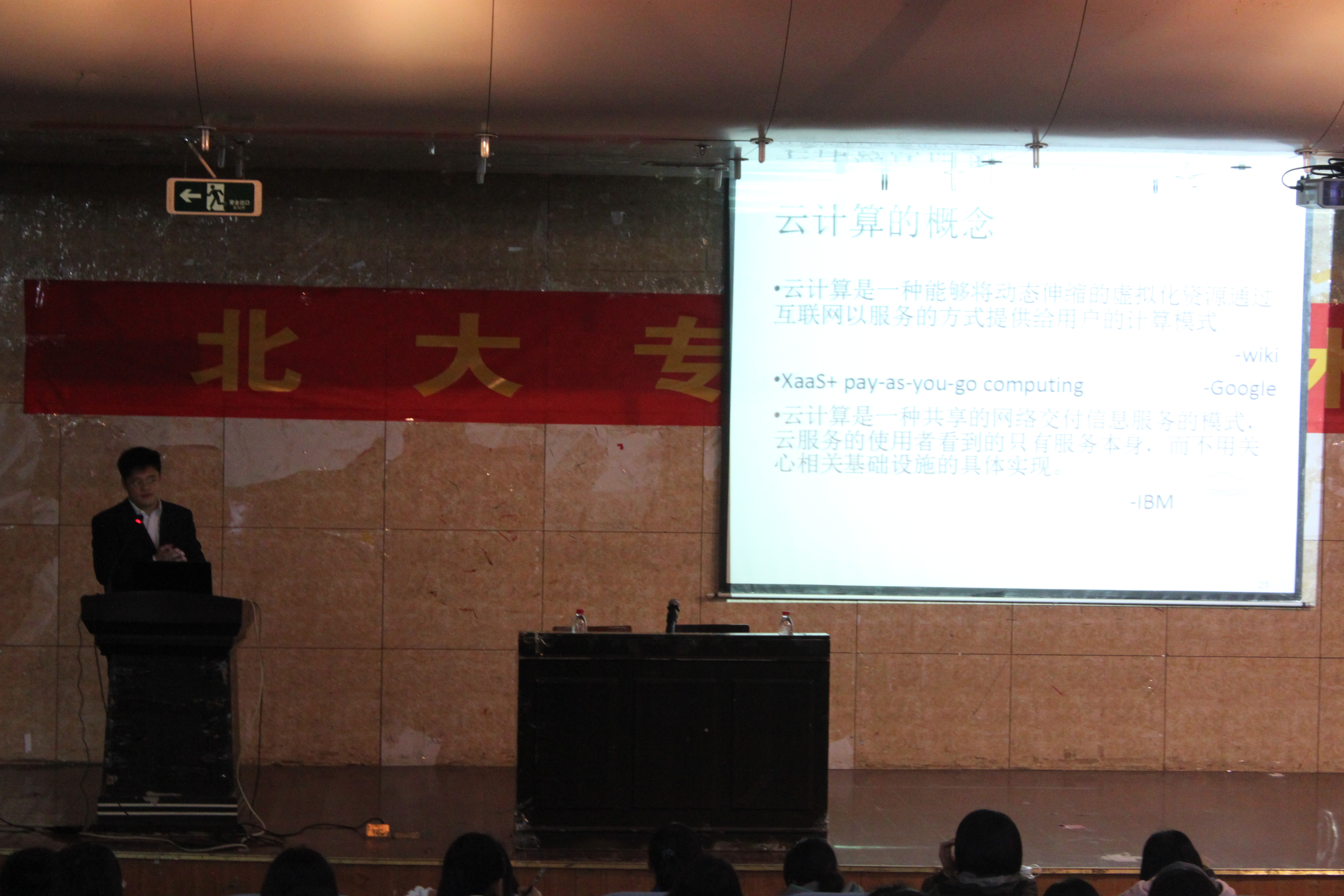 学子比较感兴趣的,但是对其概念比较模糊,不知其具体应用,李教授于是用几个贴近生活实际的小问题轻松的就将同学们对于“云”的疑惑解开,并且列举了我们比较关注的淘宝云、腾讯云以及新浪云等鲜明的例子,将云“变买为租”的宗旨生动的展现给在场同学,揭开了同学们心中关于“云技术”的那层神秘面纱。在讲座的最后,李教授与我们一同进行了计算机这一职业的发展讨论,从理论知识、动手能力、Soft Skills、从事工作这四个方面对我们提出实质要求,用“You build your resume on a daily basis”这一对我们同学的寄语结束了这一精彩绝伦的学术讲座。