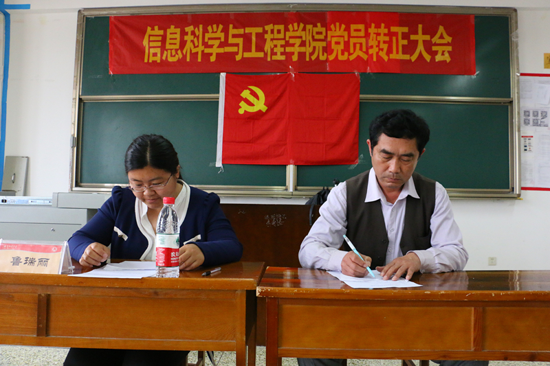 党总支副书记颜景民,辅导员鲁瑞丽老师。参加此次转正大会的为信息科学与工程万博娱乐城