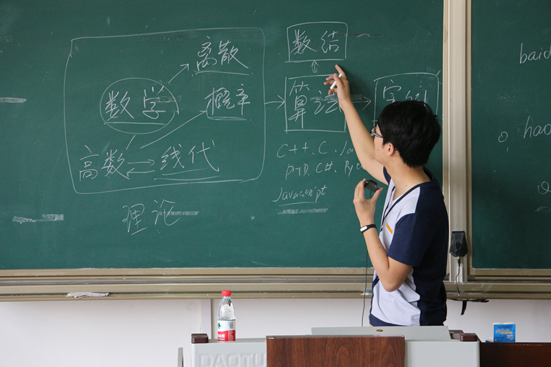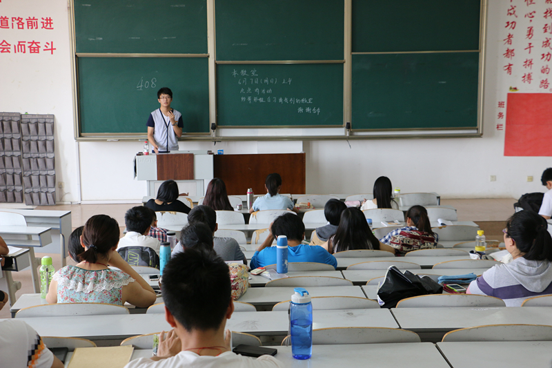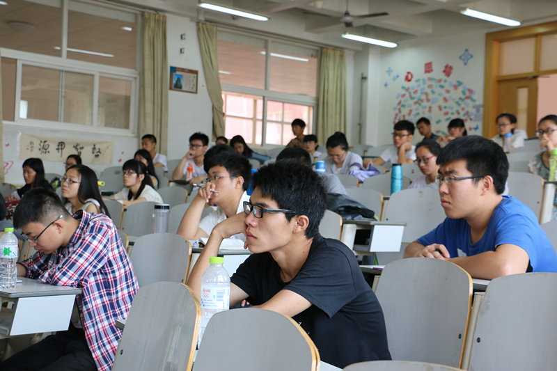 众多的优秀毕业生之一,他从当前学习科目与今后工作的联系性到当下的就业形势为到场的同学们进行了详细分析与讲解。他以自身的经历为例,强调了个人能力的重要性,并且指出了大学生普遍存在的不自信现象。他主张大学生应当对自己有信心,能敢于尝试而不是畏手畏脚。他引用了马云的“万一要是成功了,那就成功了;万一不成功,我也没什么损失”等一系列成功人士的例子,鼓励同学们尝试参加一些对自己有益的比赛。在随后问答环节中他为准备考研的同学提出了可行的建议,并分享了自己考研失败的经验。与此同时他也劝诫大一的同学们要从一开始就认真对待学习,不要一心只想着搞突击,考试成绩不是目的。