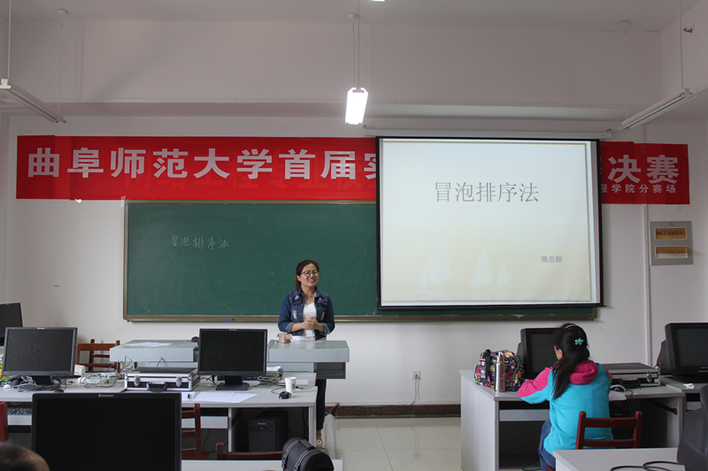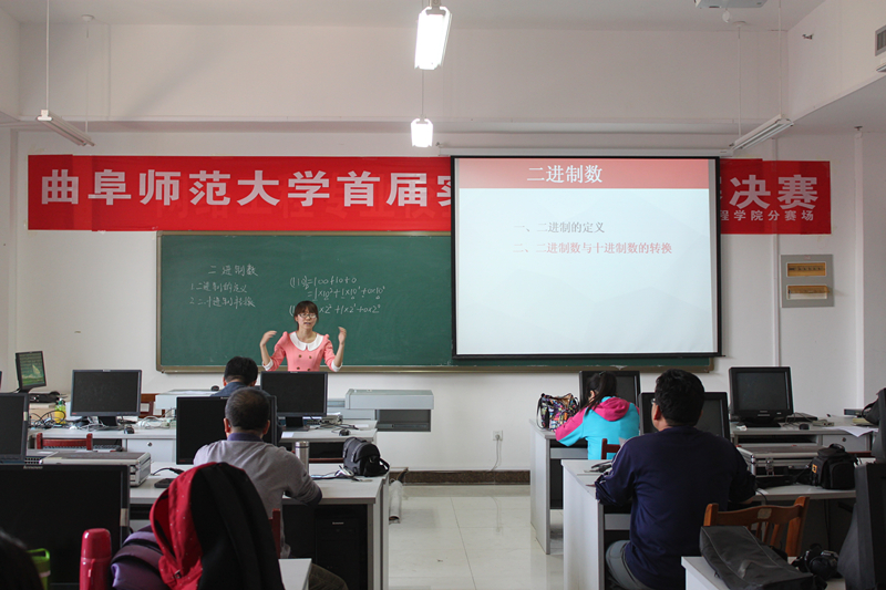 本次比赛共有十一位选手参加,比赛伊始高院长对此次比赛进行了简短的介绍,各位参赛者抽签决定出场顺序并依次上台进行15分钟的展示,参赛者们为本次比赛精心准备了“二进制数”、“图片的合成”、“计算机软件”等课程。通过生动的课件展示和认真仔细的讲解,将枯燥的计算机知识,讲授得有声有色,引导学生“学会自主、学会认识、学会体验”。此次比赛的评分依据不仅取决于参赛者的授课能力,也与参赛者的整体形象,板书及普通话标准等有关。在所有参赛者展示完后,由各位评委老师进行打分并将分数统计审核。