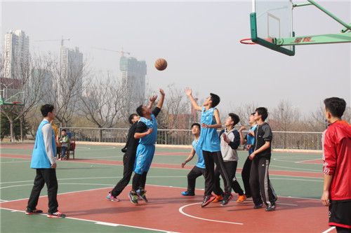 篮球“迎新杯”小组赛最后五场比赛在西篮球场如期展开。参赛队伍以班级为单位,包括13级和14级各班级,共十支队伍。