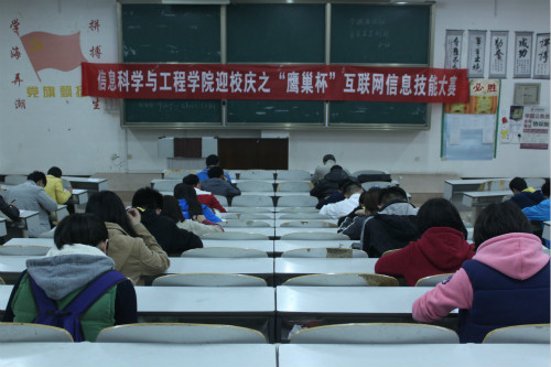 于日照校区E楼201、303、304教室同时举行“鹰巢杯”互联网技能大赛顺利举行,本次比赛由学生会科技创新部主办。