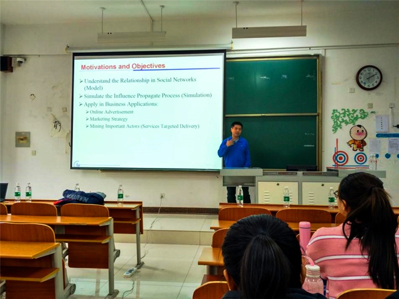报告会开始,蔡志鹏教授就“Influence Analysis Towards Social Network”引出“大数据”这一热门话题,通过列举数据隐私和传染病模型的例子,以基础概念给大家介绍“大数据处理与分析”,使同学们对社会网络的了解更加深刻。随后,霍炎教授详细介绍了本次研讨主题的背景,为同学们做好铺垫,紧接着重点讲解计算机网络物理层安全的维护等内容。别荣芳教授介绍“可穿戴的青少年体质健康实时监测系统”,围绕实时监测系统结合社会实际问题展开讨论,提出独特的见解。最后,成秀珍教授做了雾计算学术报告,将数据处理从核心服务器转向网络边缘设备,使数据更接近终端用户,从而减少了网络通信量,降低了网络延迟。