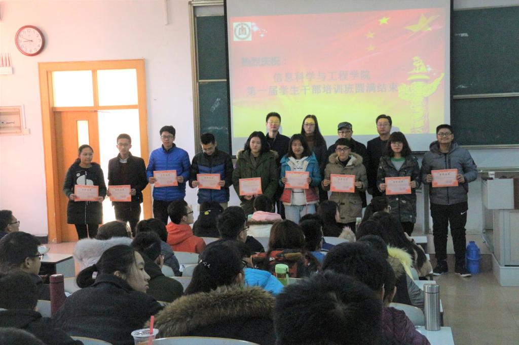 12月17日上午8:10,2017级学生干部培训班结业仪式在E305圆满结束,校团委副书记刘蓉,党委副书记肖龙航,团委书记毕文波,辅导员姜振栋,万博娱乐城