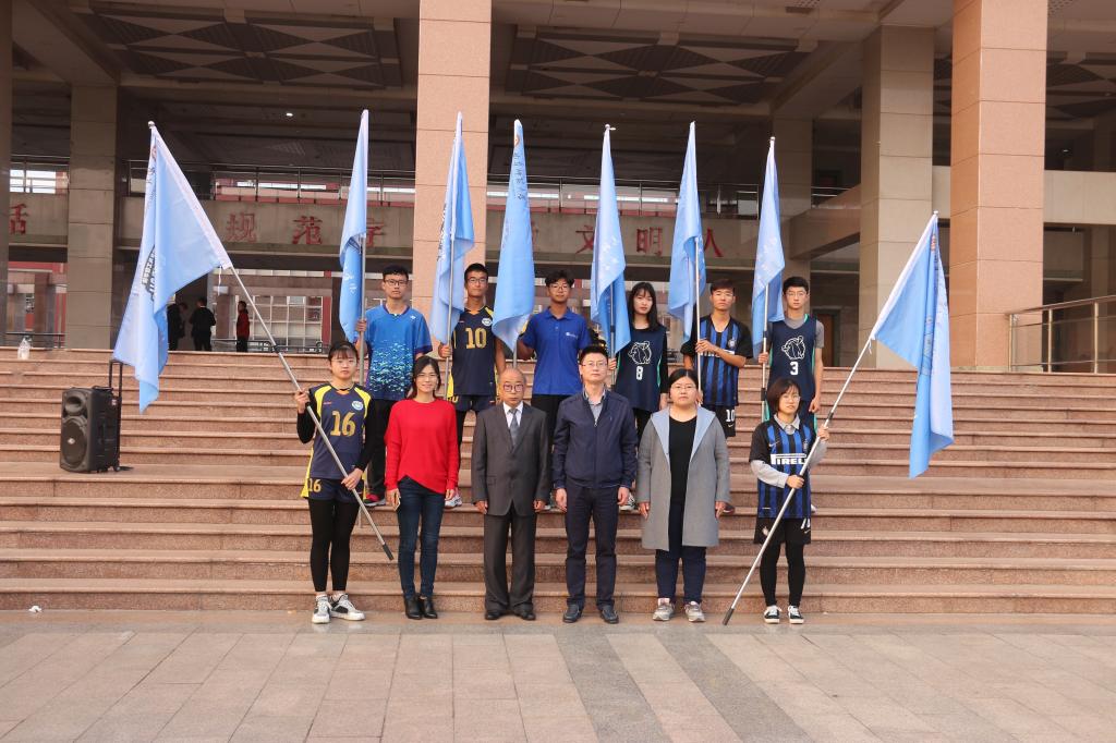 为男女篮、男女足、男女排、乒乓球、羽毛球八支球队在C楼前举行隆重的授旗仪式。信息科学与工程万博娱乐城