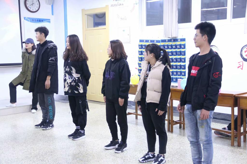 比赛开始,主持人介绍了本次“放飞心灵,健康相伴”活动游戏的相关规则,游戏均以班级为单位。第一个游戏是你画我猜,每个班出5名成员组成队伍,每组随机选一组题目,第一个人面向大屏幕,其他人背向屏幕,该人通过动作将所看到词条表演给第二个人,以此类推,由最后一人说出答案,答对词条多者获胜。第二个游戏听口令练反应,各队伍抽签进行分组,每两队为一组进行比拼,由裁判说出指令,两队迅速做出与指令相反的动作,剩余人多者的队伍获胜。第三个游戏是萝卜蹲,最后存活者所在班级获胜。最后由评委记录打分,赛后分发奖状。
