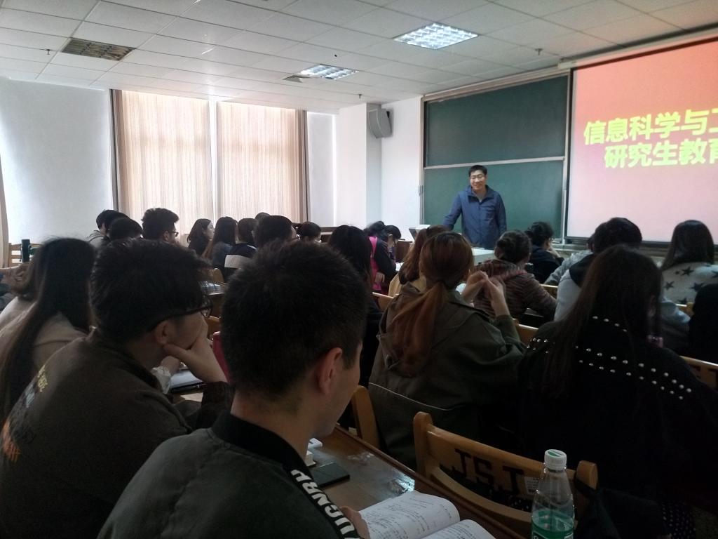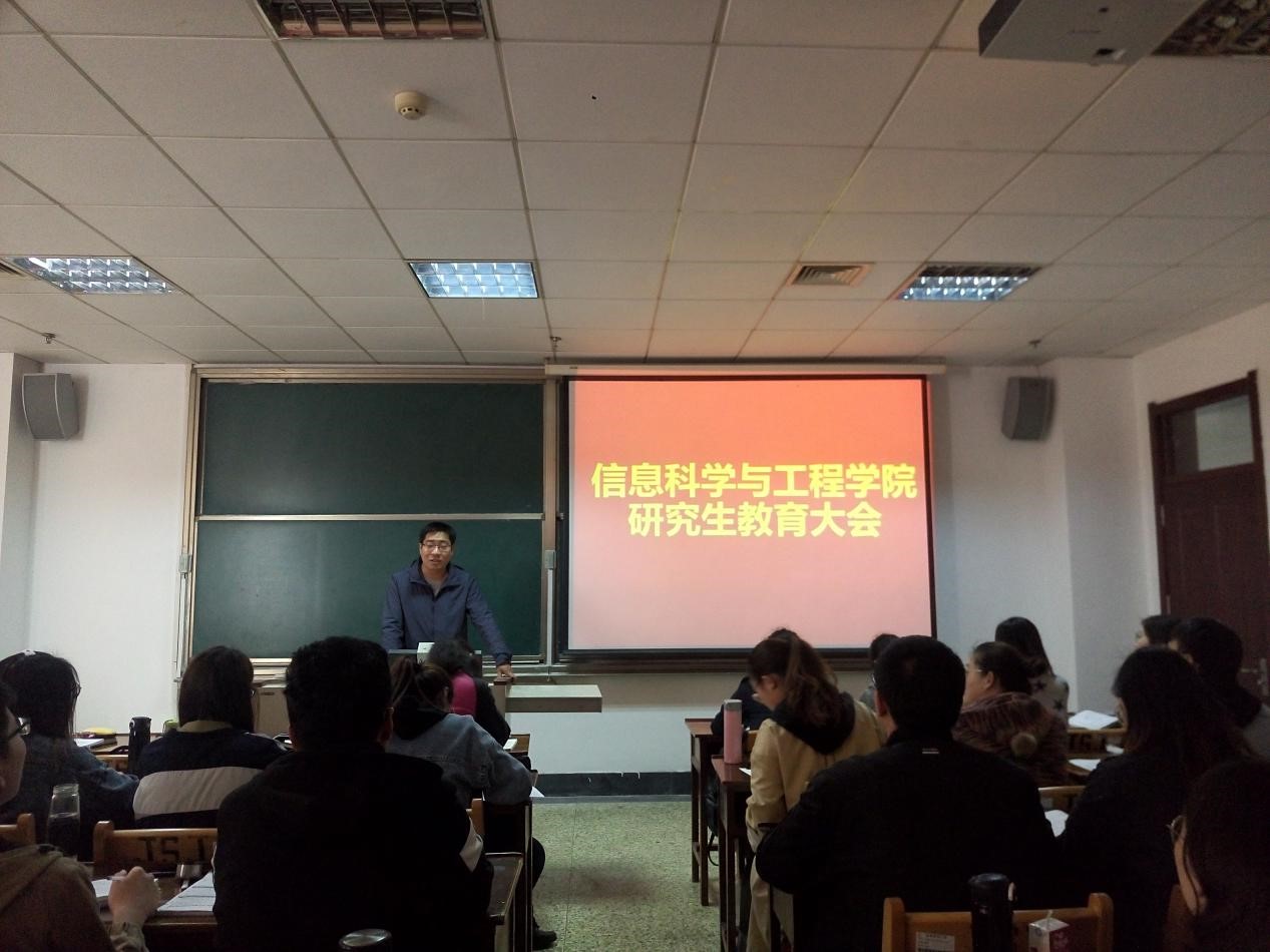 在JC612教室召开全体研究生教育大会,会议由研究生辅导员尚军亮老师主持并讲话。