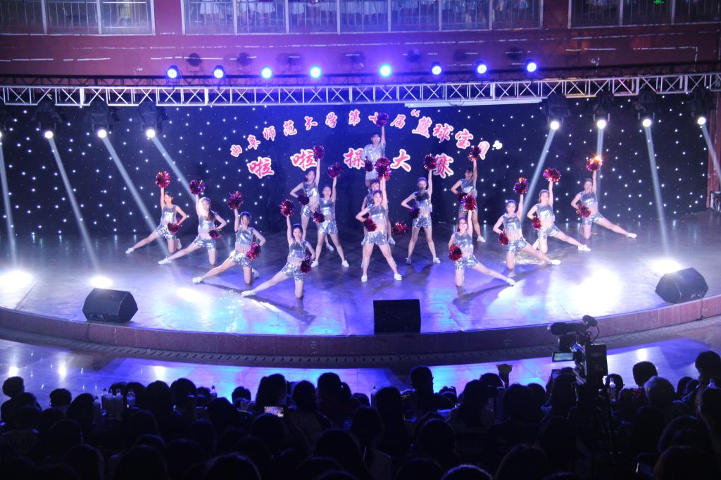 第七届“篮球宝贝”啦啦操大赛在阳光会场顺利举行。To Be Free啦啦队代表我院参加本次比赛。