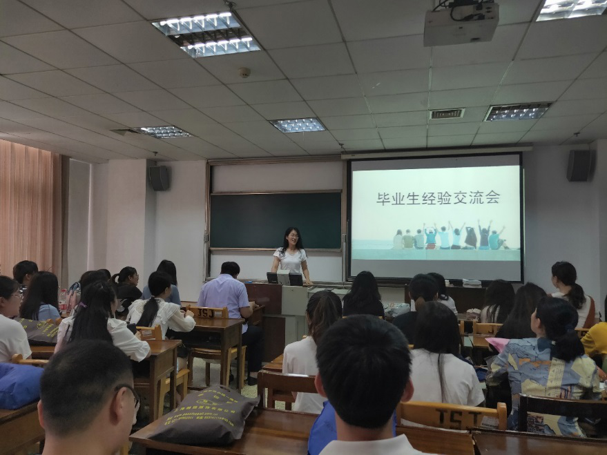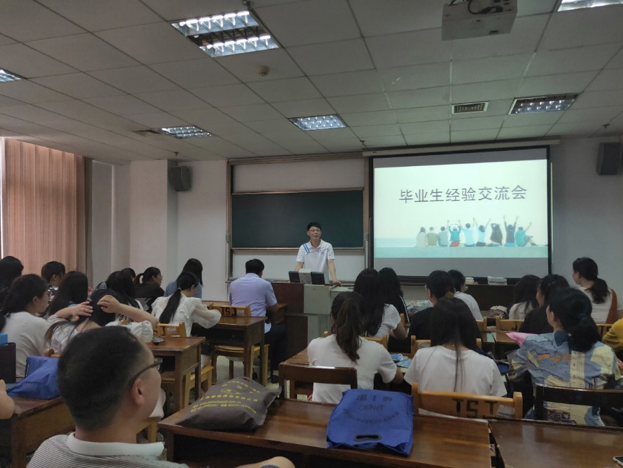 最后,孙坤、侯米潇、曹倬铭三位优秀毕业生分别就工作、考博、考公等内容展开经验交流。三位毕业生的发言内容详实,语言风趣,条理清晰,对同学们提出的问题进行了耐心细致的解答,并祝福师弟师妹们能够无悔青春,走向美好未来。
