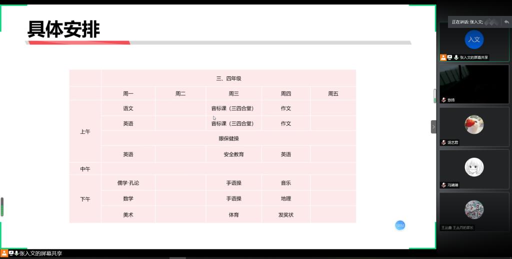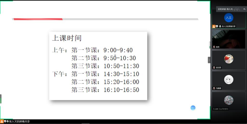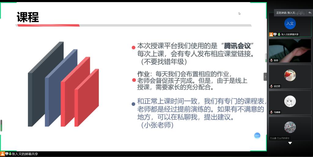此次会议的顺利召开,加强了家长与老师之间的沟通协作,解决了家长心中的疑惑,让家长们对此次线上教学活动充满期待,也让教学组老师对此次线上教学活动充满信心,有利于线上教学活动的进一步展开。