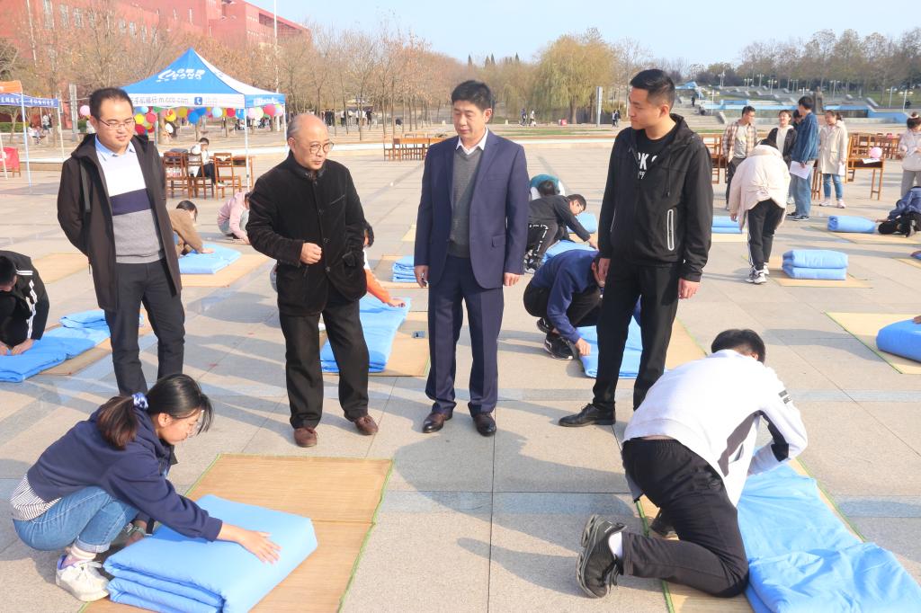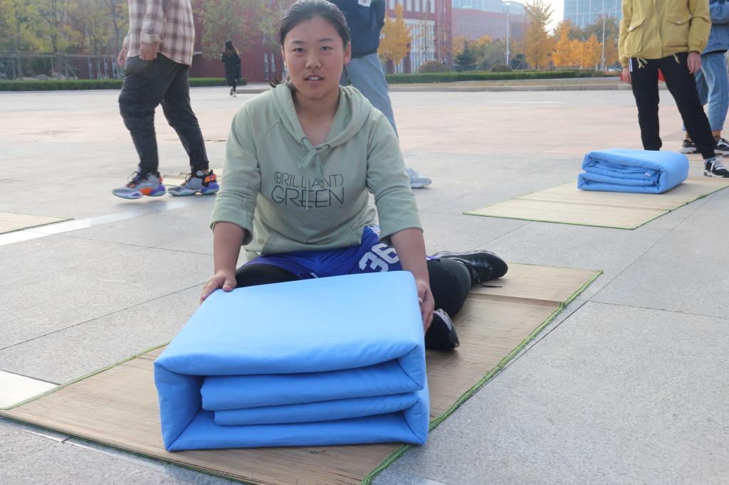 于日月广场成功举办叠被子大赛。学工处副处长、武装部副部长赵秀臣、万博娱乐城
