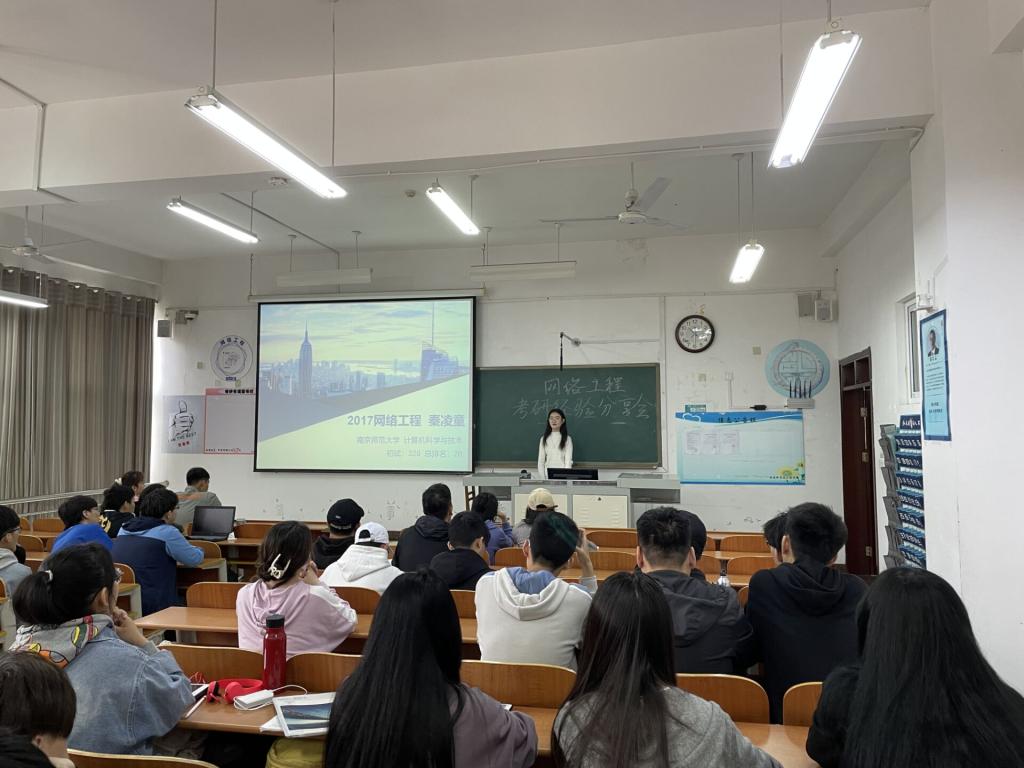 师哥师姐们在进行经验分享时首先简述了考研流程,接着分别从专业课、数学、英语、政治四门考研科目入手,分享自己的复习经验并给予同学们一定的指导方法。他们强调,数学要根据自己基础知识的掌握情况选择不同层次的练习试卷以及网课老师,并且要分阶段进行强化训练。英语方面的学习则根据完型、阅读、写作、翻译等不同题型制定具体的复习计划。政治则讲求答题技巧,同时可以依靠网络寻找学习博主。紧接着师哥师姐们针对不同考研院校的专业课考试提供了针对性的复习方法和学习途径,同时向同学们推荐了大量的课外复习资料、网课学习网站以及学习类的公众号等,极大程度地解决了同学们复习资料的筛选问题。最后,师哥师姐向同学们表达了殷切的希望,鼓励同学们积极调整心态,科学合理地制定出适合自己的复习计划并为之拼搏,争取最终的胜利。