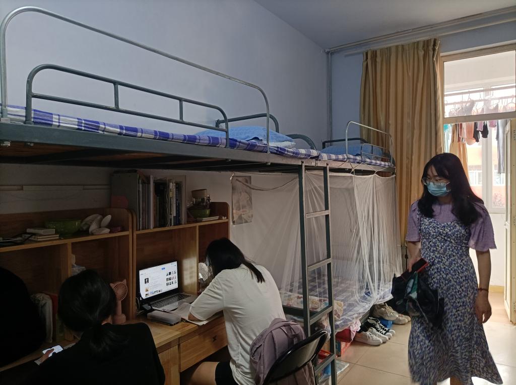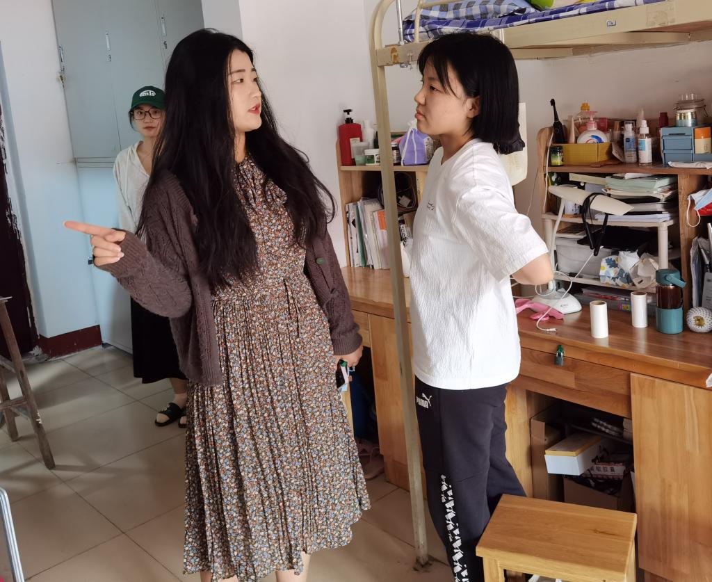 老师和宿管部、纪检部成员兵分几路,对各宿舍卫生、用电等进行逐一摸排。毕文波老师对19级男生宿舍进行检查,表示卫生状况良好,但宿舍大厅阳台存在些许问题,并提出整改意见,希望同学在注意各自宿舍卫生的同时,保持好公共区域卫生;于运清老师对四季花园女生宿舍进行检查时,表示经检查大部分宿舍卫生状况良好,床铺及生活用品整齐美观但部分宿舍卫生仍需进一步改善;孙宇老师在检查18级女生宿舍检查时强调宿舍用电安全问题,强调严禁使用违规电器;纪玉超老师针对18级男生宿舍进行检查,提出要注意宿舍物品的摆放,保证宿舍的干净整洁,为个人生活、学习营造良好的环境氛围;杨丹丹老师在检查19级女生宿舍时,向各宿舍强调了宿舍用电安全,特别是路由器处电线的摆放问题需要进一步改善,同时,注意厕所卫生;孙泽玮老师对20级男生宿舍进行检查,表示宿舍卫生良好,叮嘱学生注意插排、电线等摆放位置,预防用电隐患。