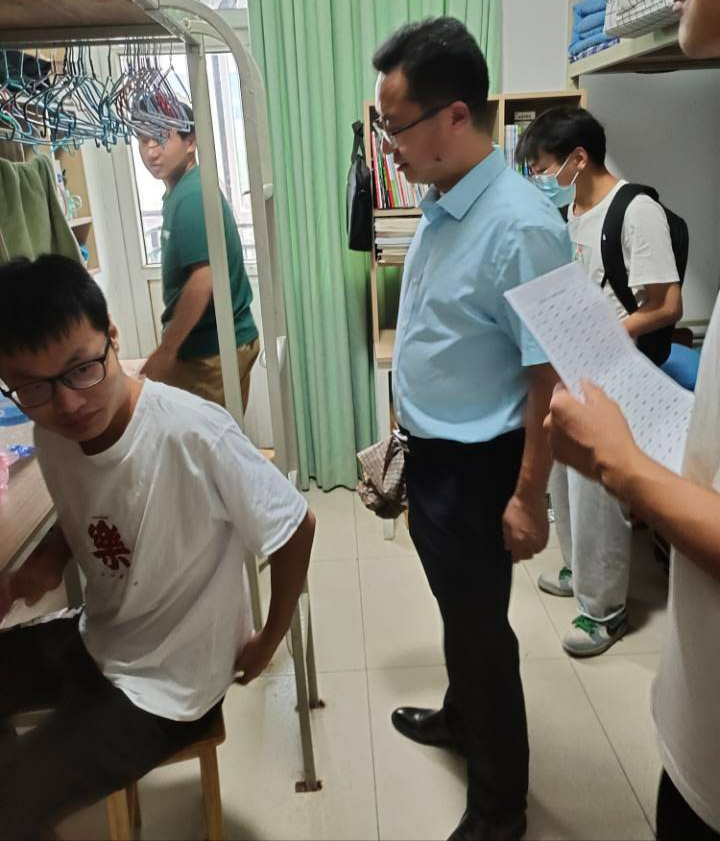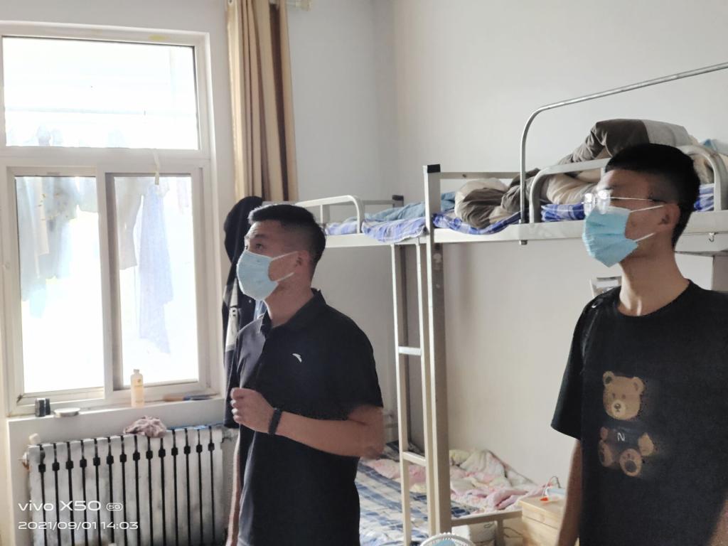 团委书记毕文波、本科生党支部书记于运清、辅导员孙宇、纪玉超、杨丹丹、孙泽玮分别带领宿管部、纪检部成员前往各年级宿舍进行检查。