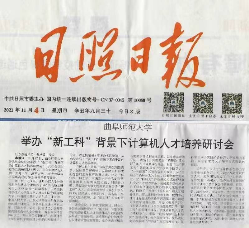 成功举办“新工科”背景下计算机人才培养研讨会。《日照日报》于2021年11月4日报道此次会议。