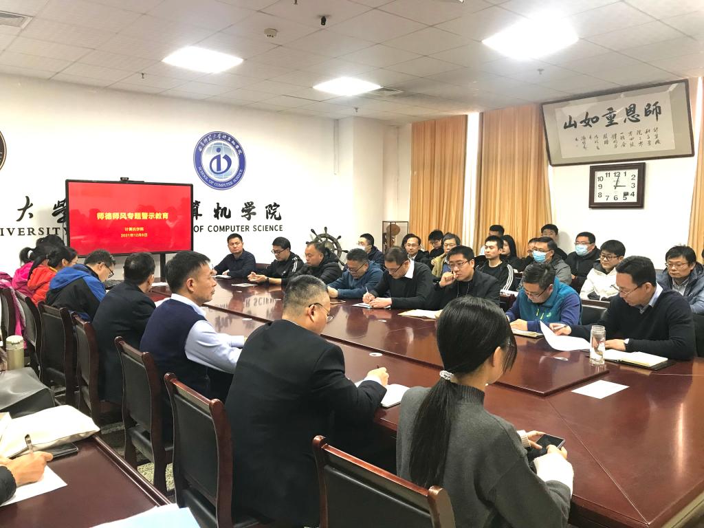 师德师风建设的重视程度,明确习近平总书记对于高校师德师风建设的总体要求。其次于书记对《新时代高校教师职业行为十项准则》、《研究生导师指导行为准则》进行了详细解读,进一步强调了师德师风建设的工作要点和对教职工的师德师风要求。会议着重学习了《关于高校教师师德失范行为处理的指导意见》,于书记强调对师德失范问题要采取“零容忍”的坚决态度,贯彻“一票否决”的关键作用,做到失责必问,问责必严,每位老师要做到“六个严禁”,杜绝师德失范行为的发生。于书记从优秀师德案例和失德违纪案例两个方面带领大家进行师德师风案例学习,会议指出,通过这些案例,全体教职工要以师德师风优秀教师为榜样,远离不良风气和失德行为,警钟长鸣,从思想上认可、行为上践行《新时代高校教师职业行为十项准则》和《研究生导师指导行为准则》。