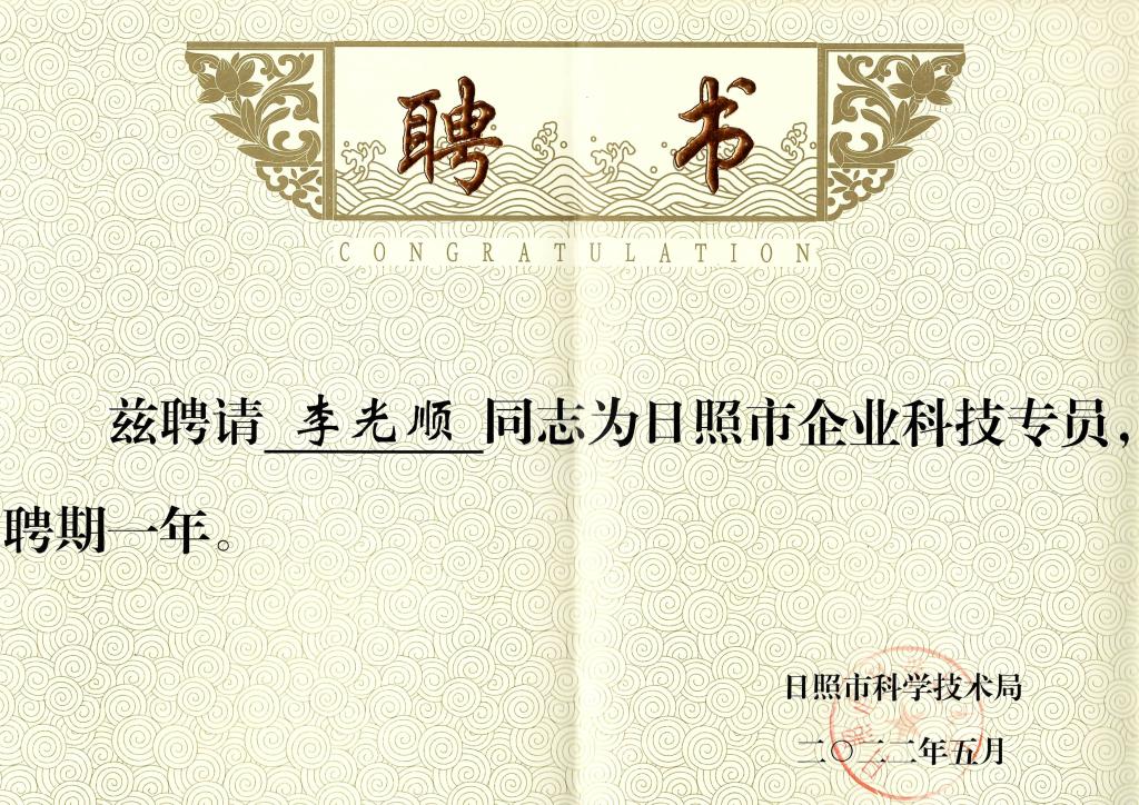 李光顺院长入选日照市企业科技专员是践行创新驱动发展战略的生动实践,也是促进市内外优秀科技成果在精准对接和转化的有效举措。同时,在创新平台共建共享、多层次人才培养引进方面有积极的推动作用,有利于发挥宝贵的人才资源,努力开创“资源共享、合作共赢”的良好局面,为推进日照市高质量发展提供有力支撑。