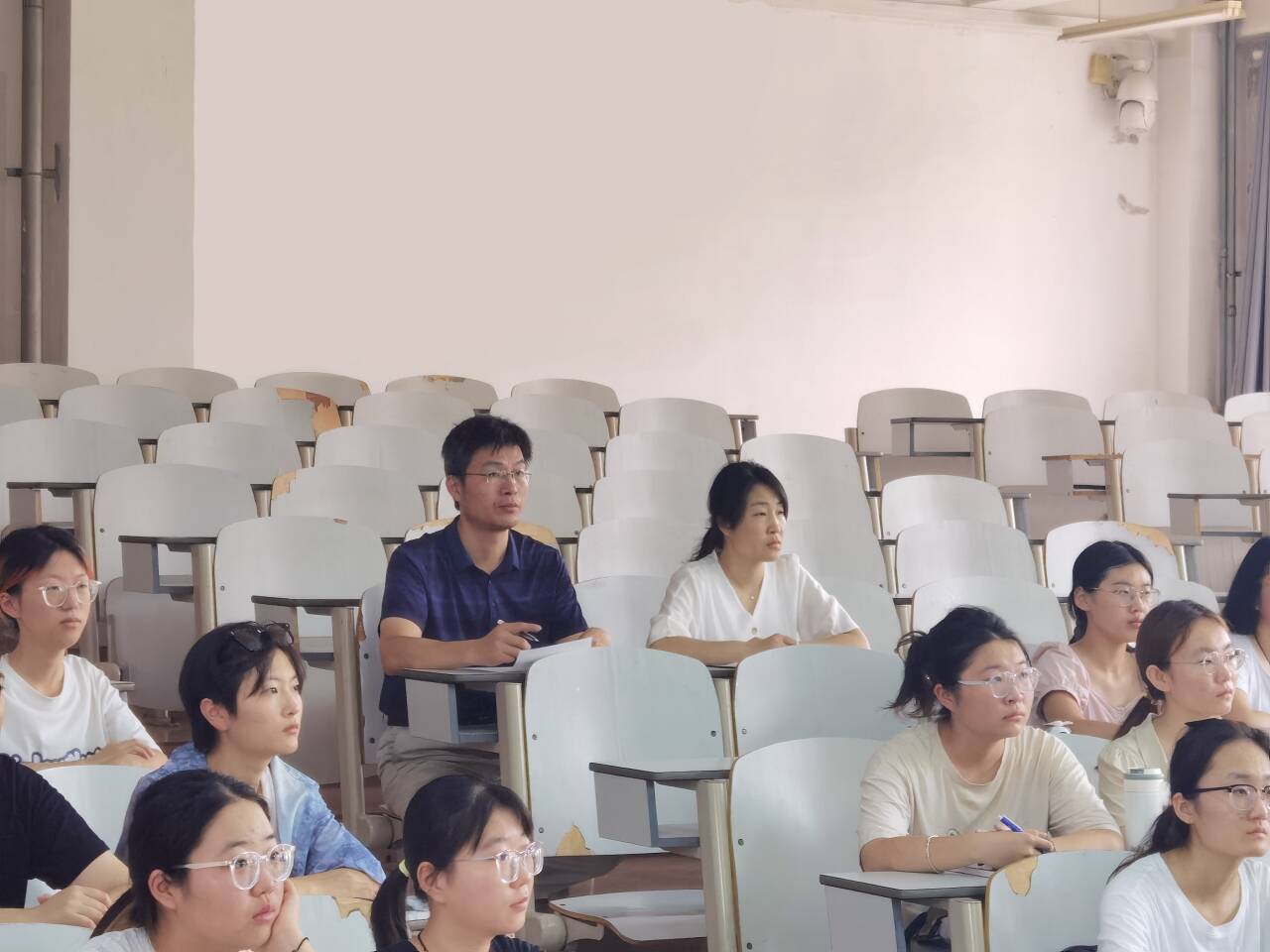 领导们专注听课,仔细记录授课教师的教学设计、授课环节以及教学内容,关注学生到课情况、学生学习状态,并认真填写听课记录表,对授课教师的课前指导、教学方法、教学能力以及教学效果进行评价。从听课过程中发现,各门课程任课教师都高度重视开学第一课,提前到达教室做好教学准备,授课态度认真,师生互动良好,课堂教学氛围浓厚;学生精神饱满、认真听课,课堂秩序良好;教学设施配备到位,卫生良好,教学状况井然有序。