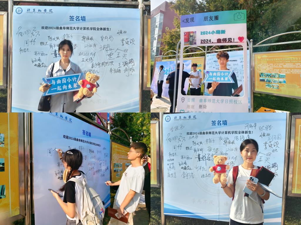 设计了签名墙,新生报到后可以在签名墙上签名并与家长拍照留念。