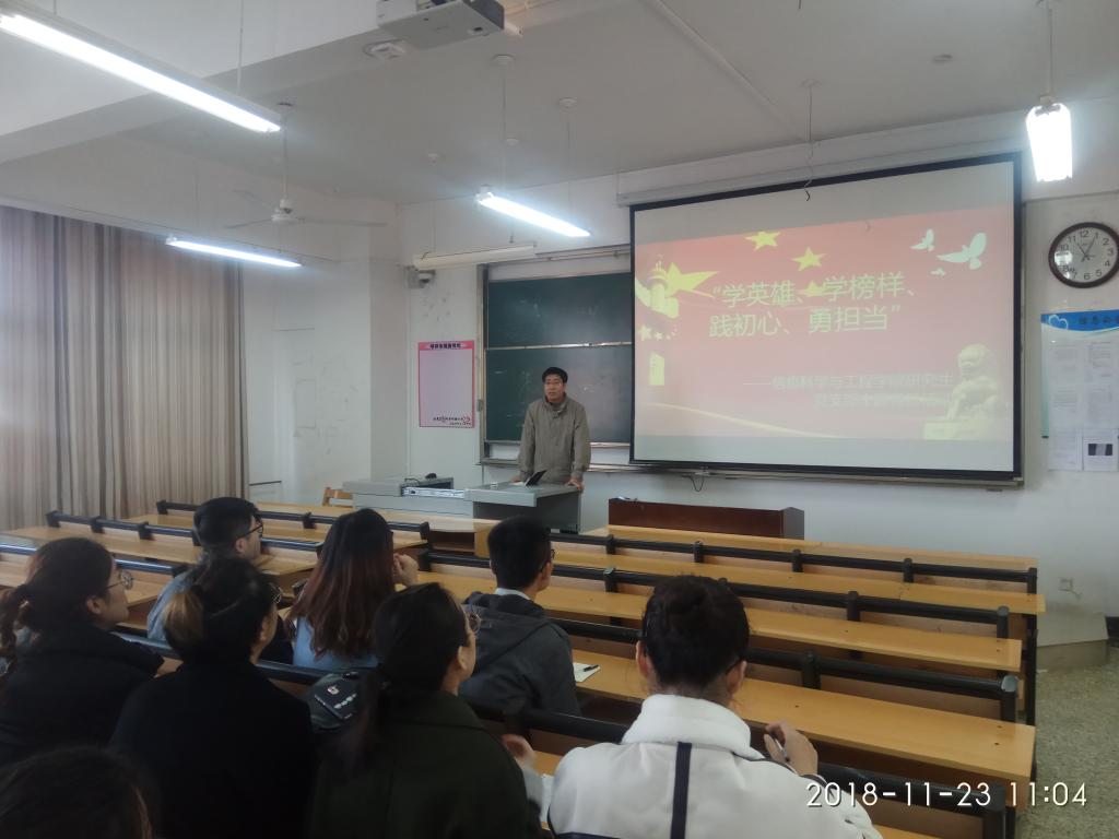 为认真学习习近平总书记重要指示精神和先进典型英雄事迹,2018年11月23日上午,信息科学与工程万博娱乐城
