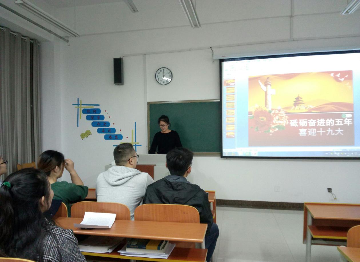 中国共产党第十九次全国代表大会于1018日在北京召开,为贯彻党的十九大方针,深入学习党的十九大精神,进一步牢固树立政治意识、大局意识、核心意识、看齐意识,不忘初心,牢记使命,高举中国特色社会主义伟大旗帜,为实现中华民族伟大复兴的中国梦而不懈奋斗。于20171022日,信息科学与工程万博娱乐城 研究生党支部在JS410举行了“学习党的十九大精神”主题党日活动,全体研究生党员参加活动,会议由副书记孙坤同志主持。