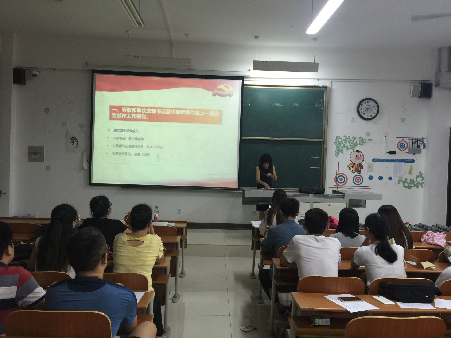 研究生党支部换届选举大会于2016年9月11日15:30在JS103隆重举行。夏小娜老师及研究生党员出席了本次大会,张璐同志担任会议主持。