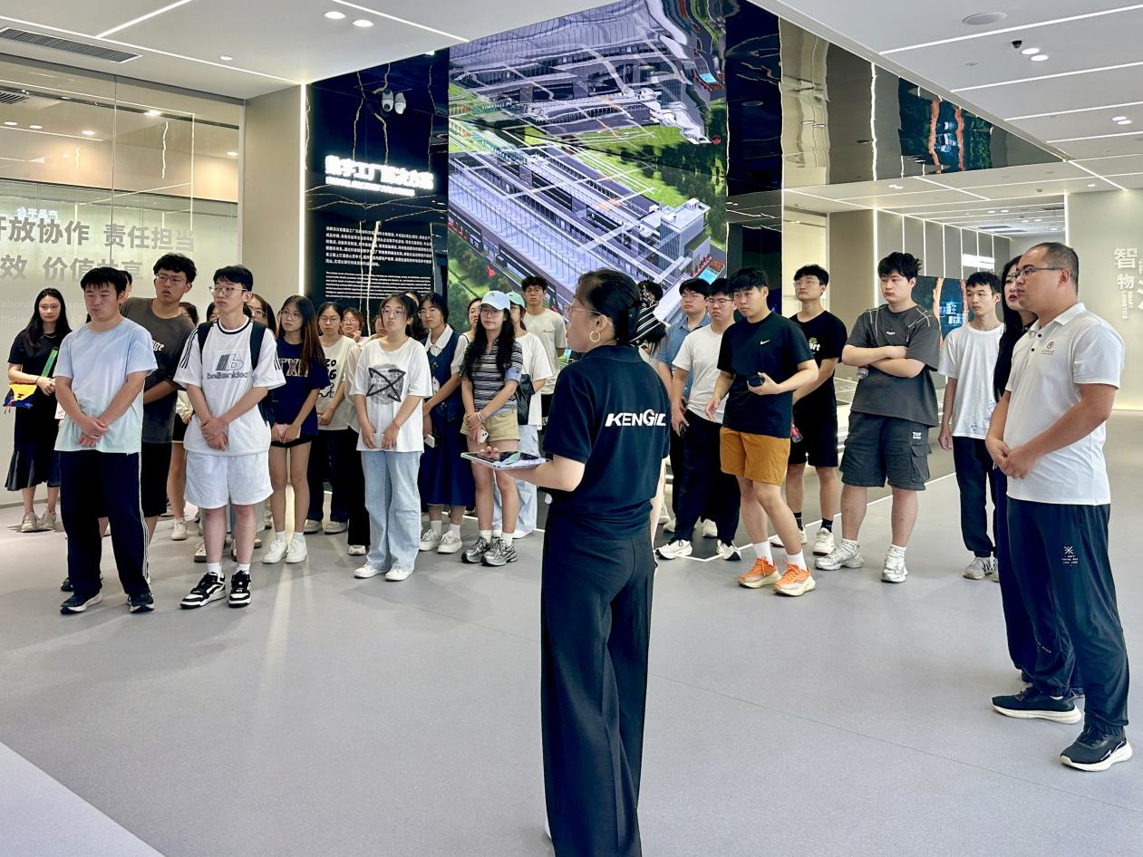 在青岛科捷智能科技有限公司,师生们通过参观智能展厅和仓储生产车间,了解了公司的发展历程、万博娱乐城、业务范围、核心技术与主要产品,同时详细探究了企业如何通过物流、仓储到整体工厂三位一体的自动化、智能化升级,成功实现精益生产、降本增效和数智化转型的全过程。