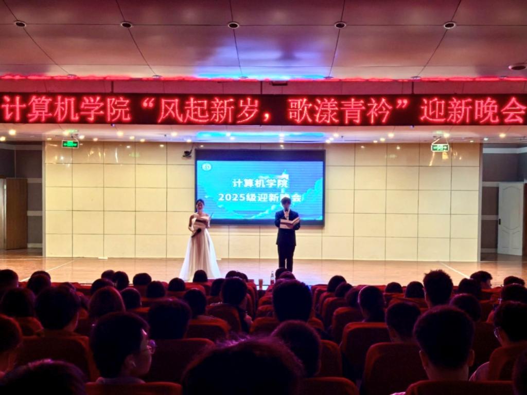 在图书馆报告厅隆重举行“风起新岁,歌漾青衿”迎新晚会。系主任马春梅、朱荣,本科生辅导员孙泽玮莅临现场,与2025级全体新生齐聚一堂,共同观看了本场晚会。