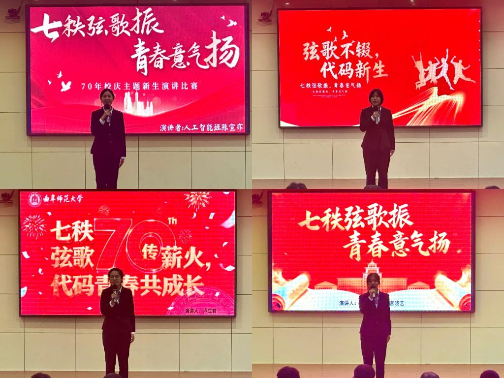 在比赛中,十二位参赛同学以大方得体的仪态和生动鲜活的语言,传递出对当前学习生活的深刻思考与真挚感受,流露出对曲园的深厚热爱与美好憧憬。在曲园建校七十周年的辉煌时刻,他们青涩的面容洋溢着蓬勃的朝气,坚定的目光闪耀着自信的光芒,用青春的声音表达了对未来的美好期许和接力奋斗的坚定信念。他们充满感染力的演讲深深打动了评委老师和现场观众,一次次将现场气氛推向高潮,赢得了阵阵热烈的掌声。