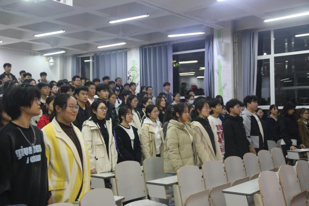 仪式在庄严的国歌声中拉开帷幕。随后,全体人员合唱团歌,在激昂的旋律中铭记青春誓言,矢志砥砺前行。