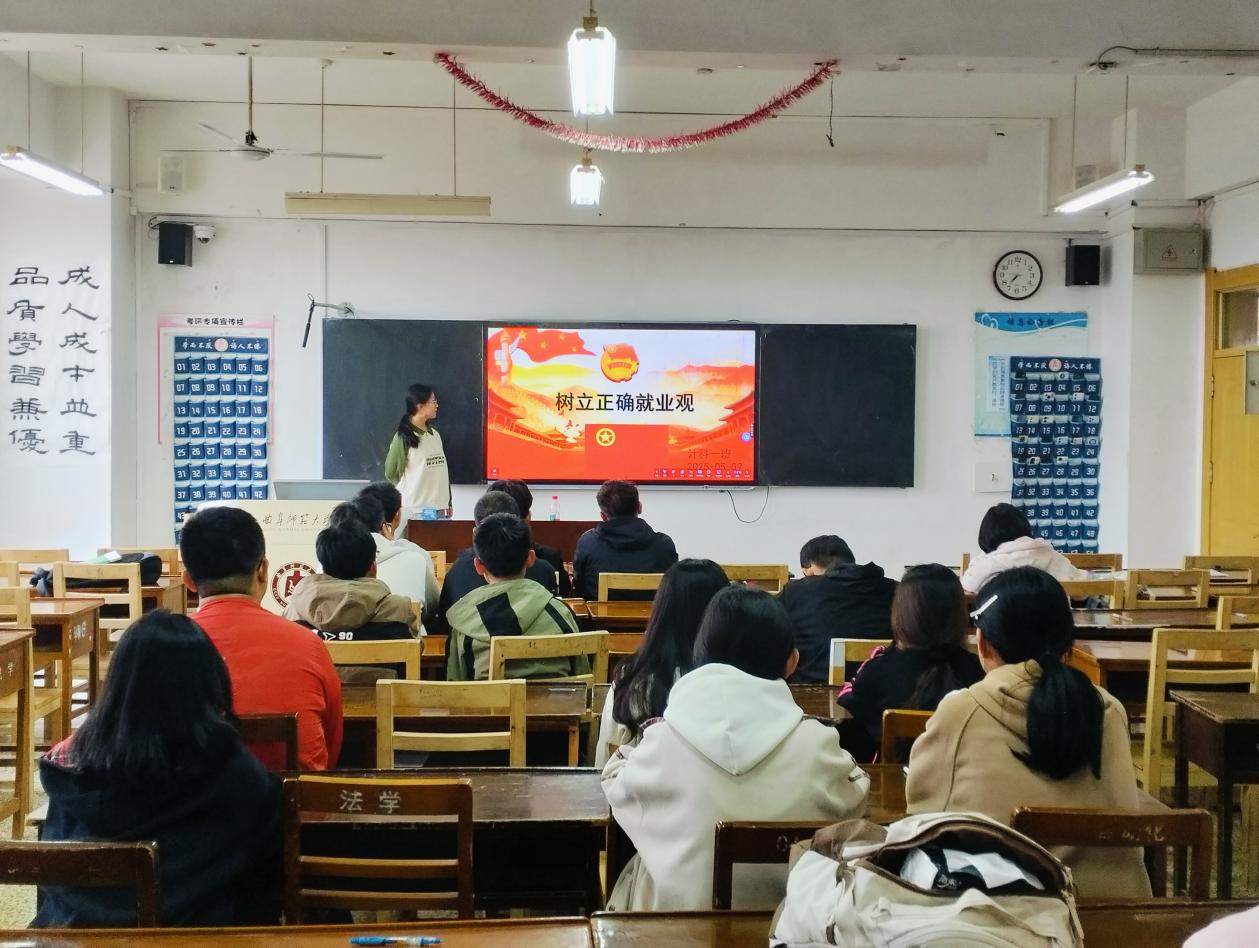 组织各团支部开展“树立正确就业观”主题团课。
