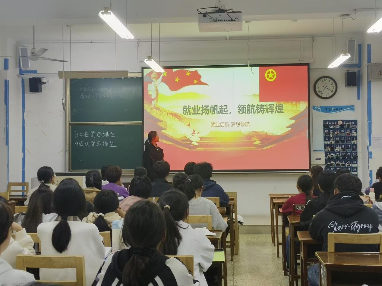 团课伊始,各班团支书指出,就业观是人生理想在职业选择中的投射,体现个体对职业目标的追求与价值判断,指出正确就业观要将个人发展融入国家需求、在服务社会中实现自我成长。随后,各班团支书围绕“何为正确就业观”,以“理想与现实”“选择与成长”为切入点引导同学们思考。同学们踊跃交流,就职业规划、行业选择、能力提升等热点问题深入探讨。现场气氛活跃,同学们在交流中厘清困惑、坚定信心。