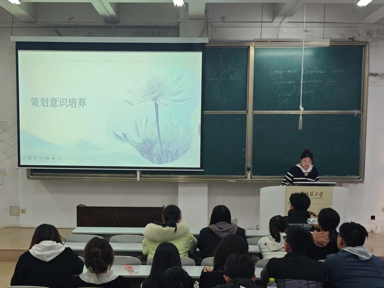 第二阶段,组织部主讲人进行策划意识培养培训。主讲人从策划意识概述、如何培养策划意识两个方面进行讲解。主讲人强调,策划意识不仅能够增进行动效率,强化风险管理,还有助于塑造职业素养,提高社会实践能力。此外,主讲人还从目标设定、学习与借鉴、创新思维、团队协作、细节执行、实践经历、反馈与总结以及时间管理等多个维度,对如何培养策划意识进行了深入的讲解。