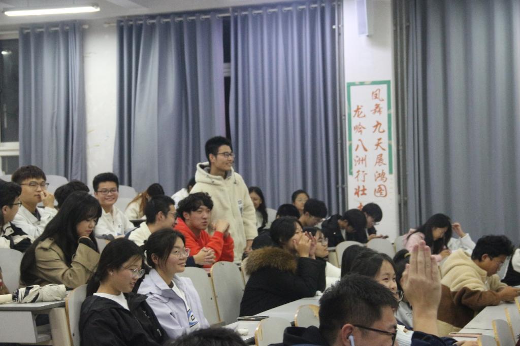 活动伊始,2023级计科(师范)2班团支书艾姜欢带领同学们重温了波澜壮阔的革命岁月,深刻理解了革命先烈为国家和人民做出的巨大牺牲。在随后的“听歌识曲”和“我朗诵你猜歌”环节中,同学们积极举手抢答,通过互动竞猜进一步加深了对红色文化的理解,增强了活动的趣味性和参与感。