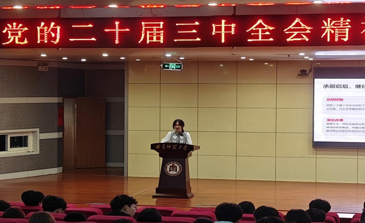 宣讲人介绍了党的二十届三中全会的会议概况和主要内容,既总结了过去的显著成就和宝贵经验,又对未来做出了明确的规划,让同学们有效地了解到了党的三中全会召开的意义和价值。