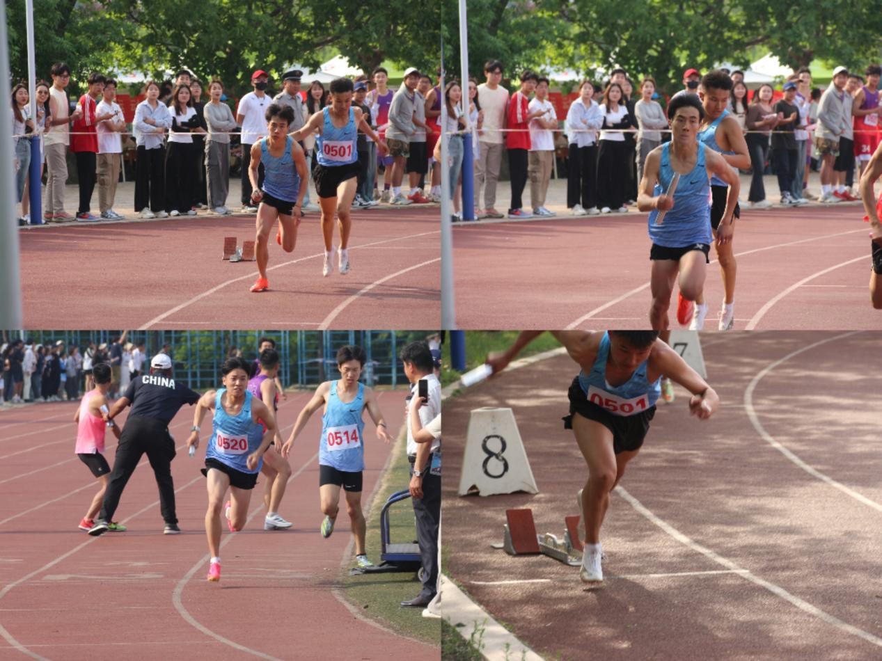 运动会田径赛男子4*400米决赛在西操田径场激烈展开。