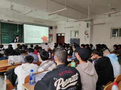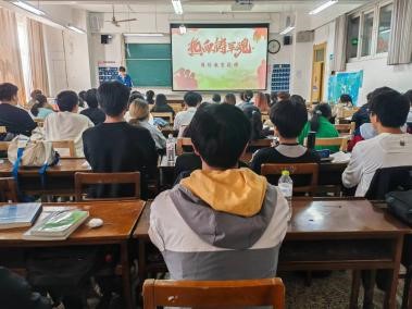 图1.各班班长为同学们讲述国防教育