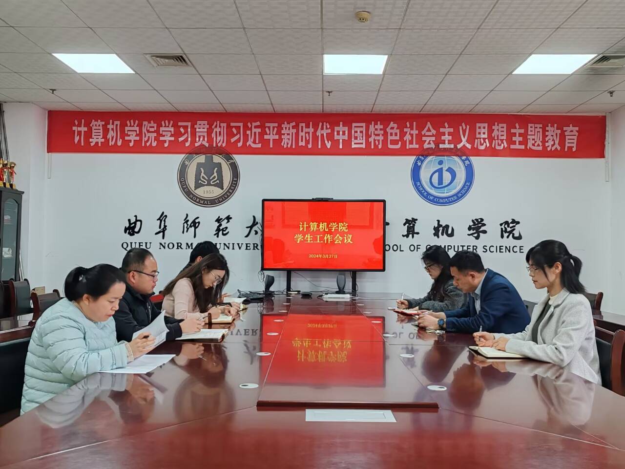 于3月27日召开学生安全工作会议,党委副书记孙旭春、团委书记于运清及全体辅导员老师出席此次会议。
