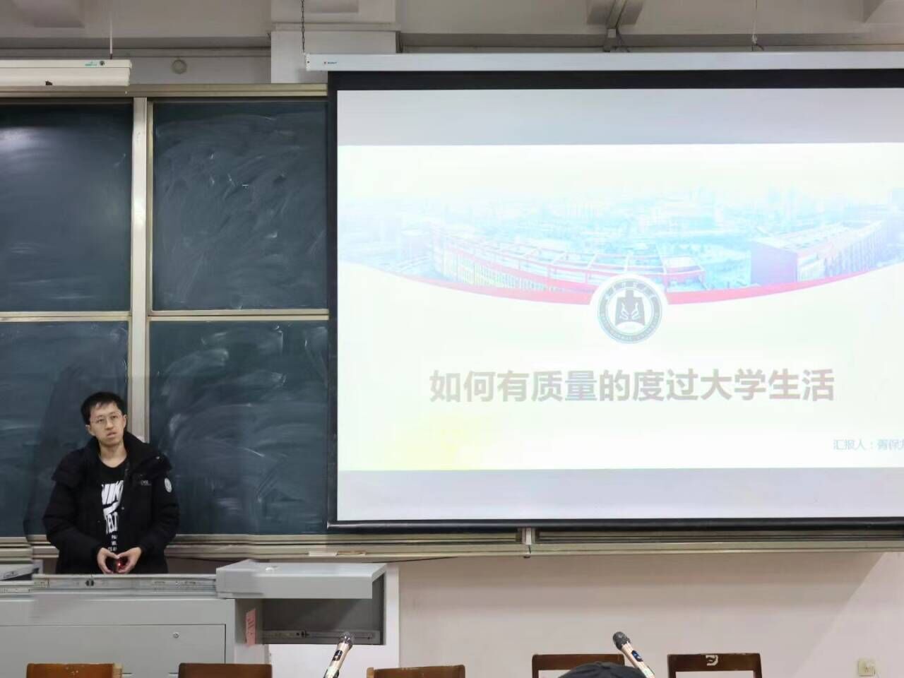 开班仪式结束后,2020级优秀学生代表胥宝龙为师弟师妹分享自己的学习经验,对如何高质量度过大学生活进行了讲解。胥宝龙表示,大一是探索适应的阶段,各位同学应利用大一打下基础,为科研之路做准备;大二是丰富简历的黄金阶段,应积极参加各项竞赛;大三则是明确人生规划的时间,应该为自己的目标去奋斗。最后,胥宝龙师哥强调大学对于个人发展的重要意义,呼吁每个人要以负责的态度度过自己的大学四年。