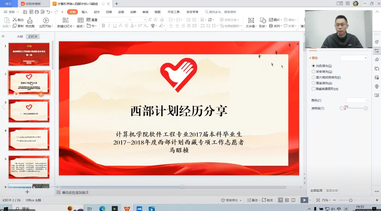 会议开始,于运清老师向同学们介绍了西部计划主题并邀请了三位西部计划志愿者校友分享宝贵经验,希望参会学生能在此次分享会中丰富阅历,拓宽眼界,对西部计划有更深刻的理解。