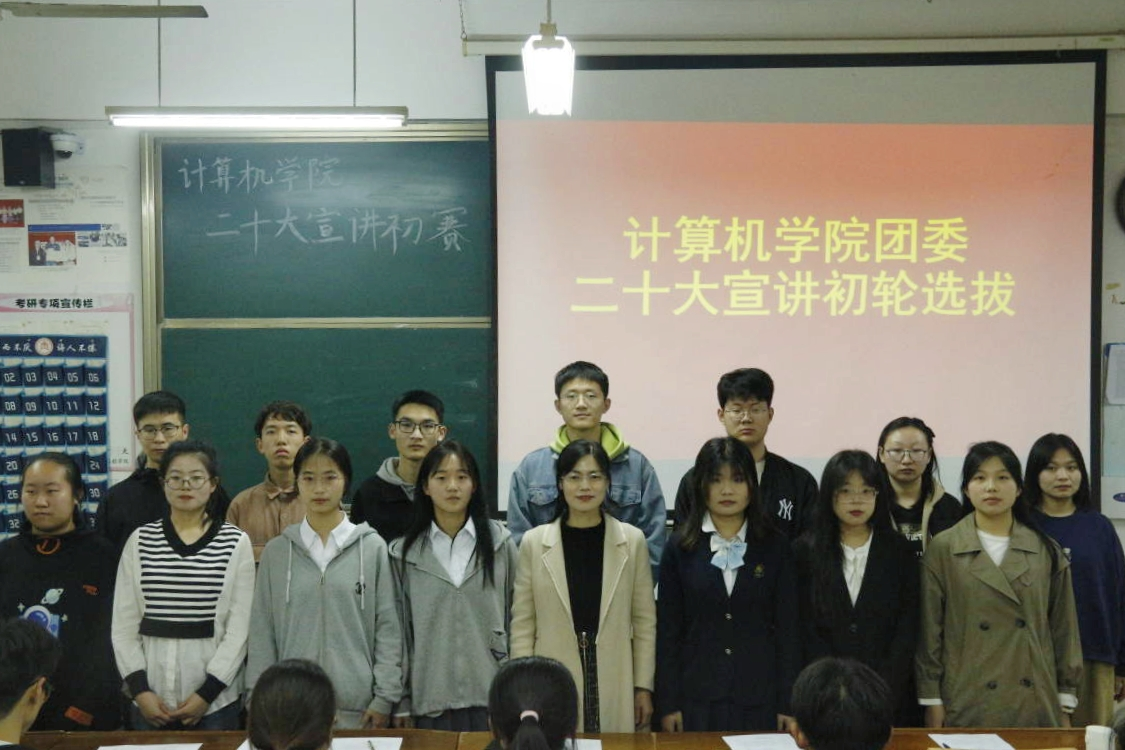 于2023年4月15日在JC402开展二十大宣讲比赛初赛。本次比赛由团委书记于运清、主席团成员以及团委各部长担任评委。