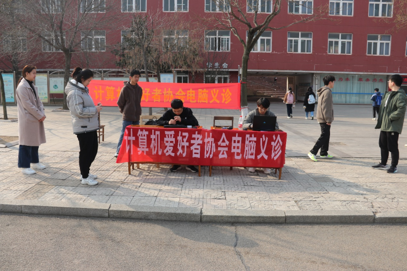 组织志愿者参加了校计算机爱好者协会举办的电脑义诊活动。此次电脑义诊主要是为同学们解决电脑硬件和软件的各种问题,比如电脑除尘,查杀病毒,系统重装等。